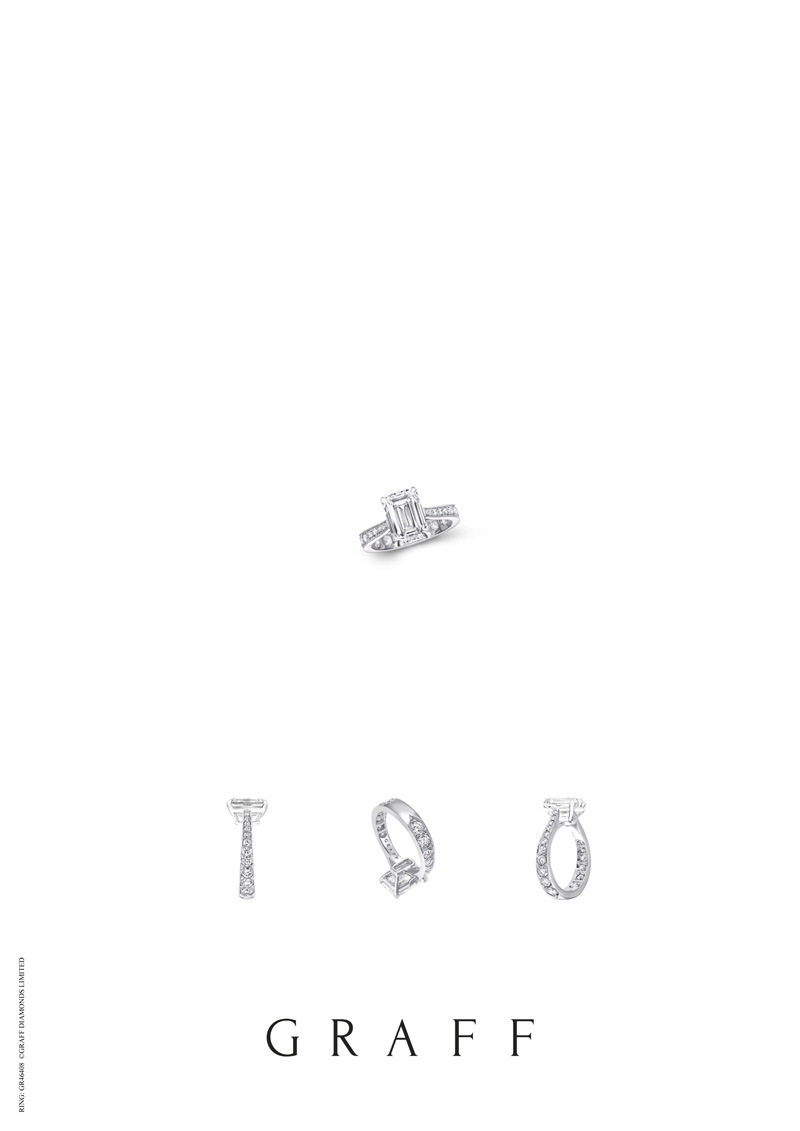 وتتّسم مجوهرات العروس من Graff بأناقتها، عصريّتها، كلاسيكيّتها، وأنثويّتها. مرصّعة بأنقى الماسات البيضاء المختارة يدويّاً من قبل فرد من أفراد عائلة Graff، يعتمد كل خاتم على حرفيّة عالية في وضع الحجارة، ممّا يعني أن الخواتم صمّمت لتغمر شكل الماسة الفريدة. ويتأكّد الخبراء من أن كل حجرة موضوعة بشكل مثاليّ، لكي ينعكس الضوء من خلالها، معززاً لماعيّتها الطبيعيّة.
