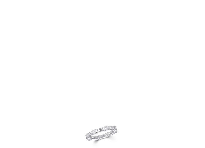 Laurence Graff Signature: ترصيع هذا الخاتم مستوحى من شكل الماسة بنفسها، وهو مصمّم ليعكس الأوجه اللامعة لحجرة السوليتير، وهو متوافر مع أو بدون ماسات pavé.