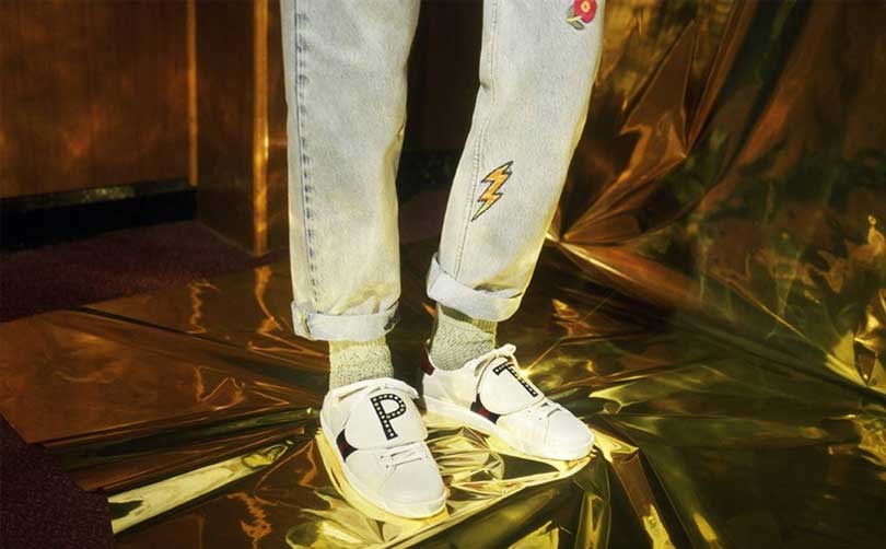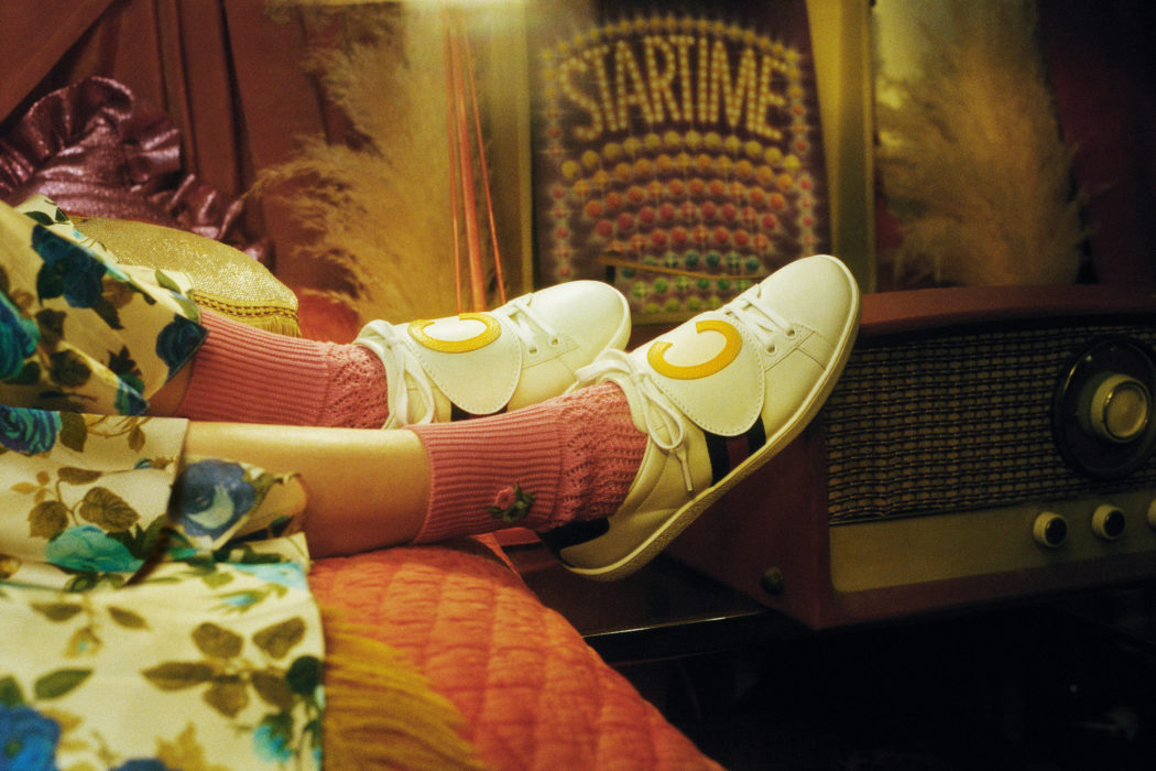 يتوفّر تصميم الأحرف الأولى على أحذية «آيس» Ace الرياضيّة (حرف واحد لكلّ فردة حذاء). يتمّ تثبيت الأحرف بواسطة رقعتين ذات أزرار، بمختلف المواد والألوان – بما في ذلك الجلد الأحمر الساطع، الأخضر، الأصفر أو الزهريّ، أو الأسود، جلد ثعبان الأصلة باللون الأحمر، الأخضر أو الأصفر الداكن الطبيعيّ، جلد «نابا» الحريريّ الملمس بلون الفوشيا اللمّاع أو الذهبيّ، أو اللبّاد الأسود المرصّع بالكريستال. الأحذية الرياضيّة مصمّمة بخطوط «ويب» الخاصة بالدار باللون الأزرق-الأحمر-الأزرق بالإضافة إلى زخرفة الكعب من الجلد باللون الأحمر والأزرق. تتميّز الأحذية والحقائب بتوقيع DIY (على نعل الأحذية، وفي الجهة الداخلية للحقائب).